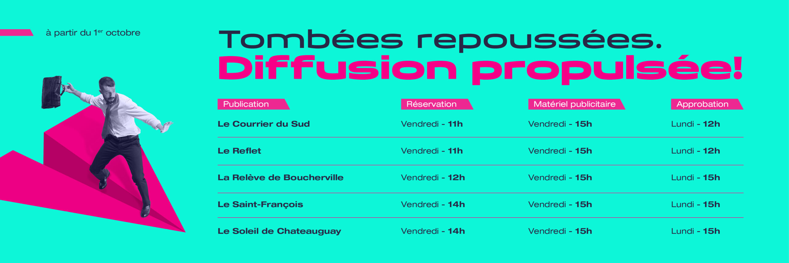 Elle est aujourd’hui propriétaire de six médias branchés au quotidien, Le Courrier du Sud, Le Reflet, Le Soleil de Châteauguay, Le Journal Saint-François, L’Information d’affaires d’ici ainsi que La Relève, sa plus récente acquisition.